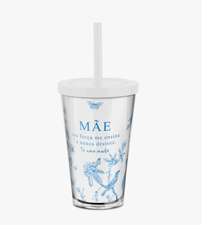 COPO CANUDO 550ML MÃE FLORAL AZUL