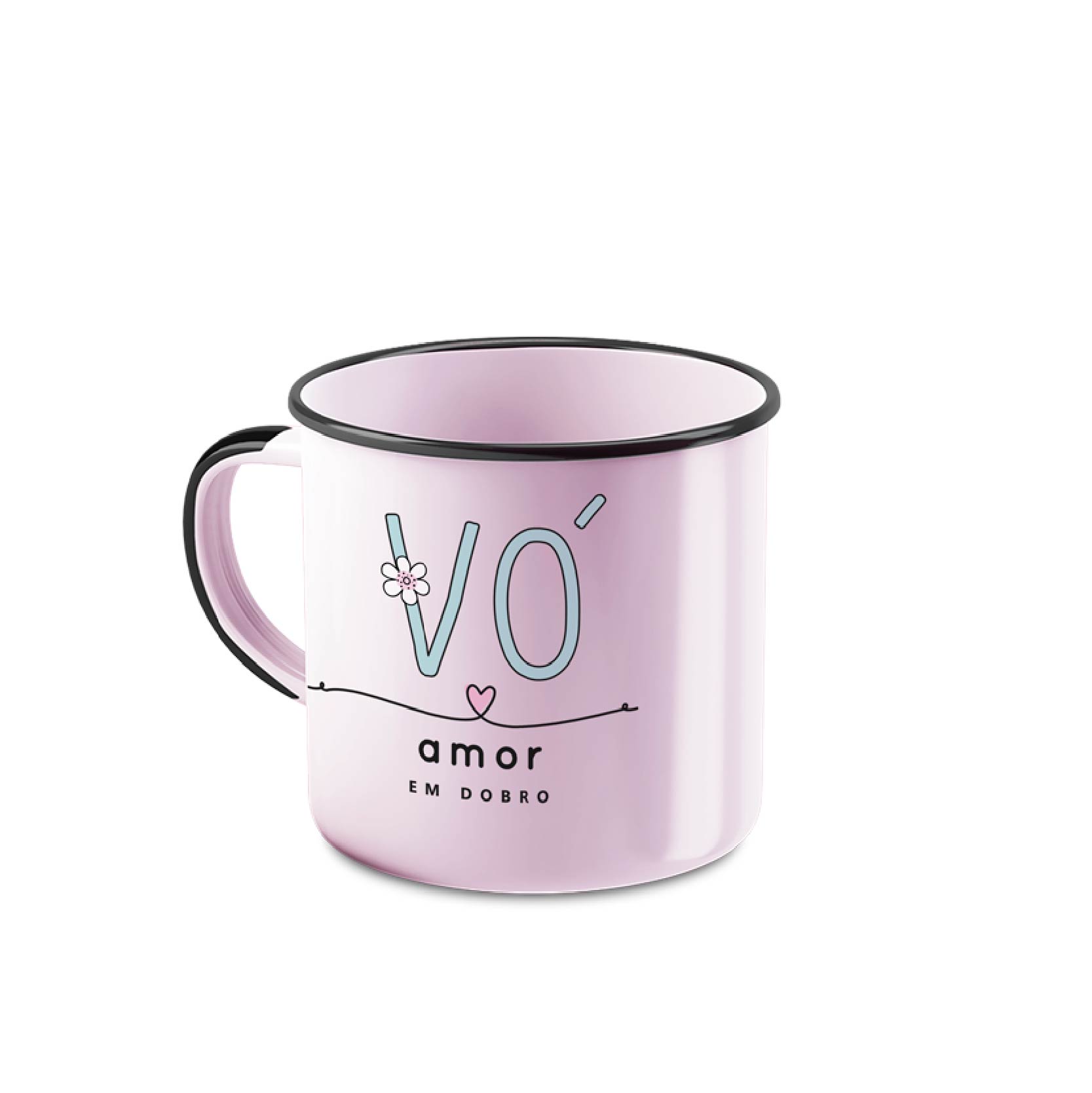 CANECA ESMALTADA 370ML VÓ, AMOR EM DOBRO