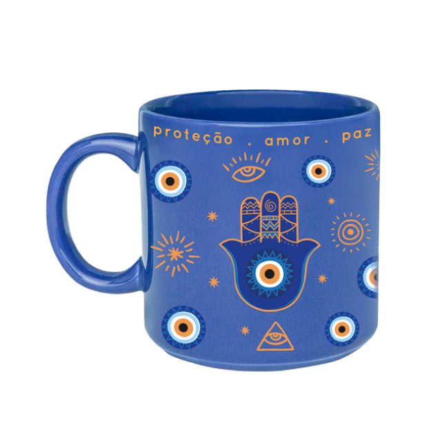 XÍCARA CONSUME PORCELANA AZUL OLHO GREGO 450ML
