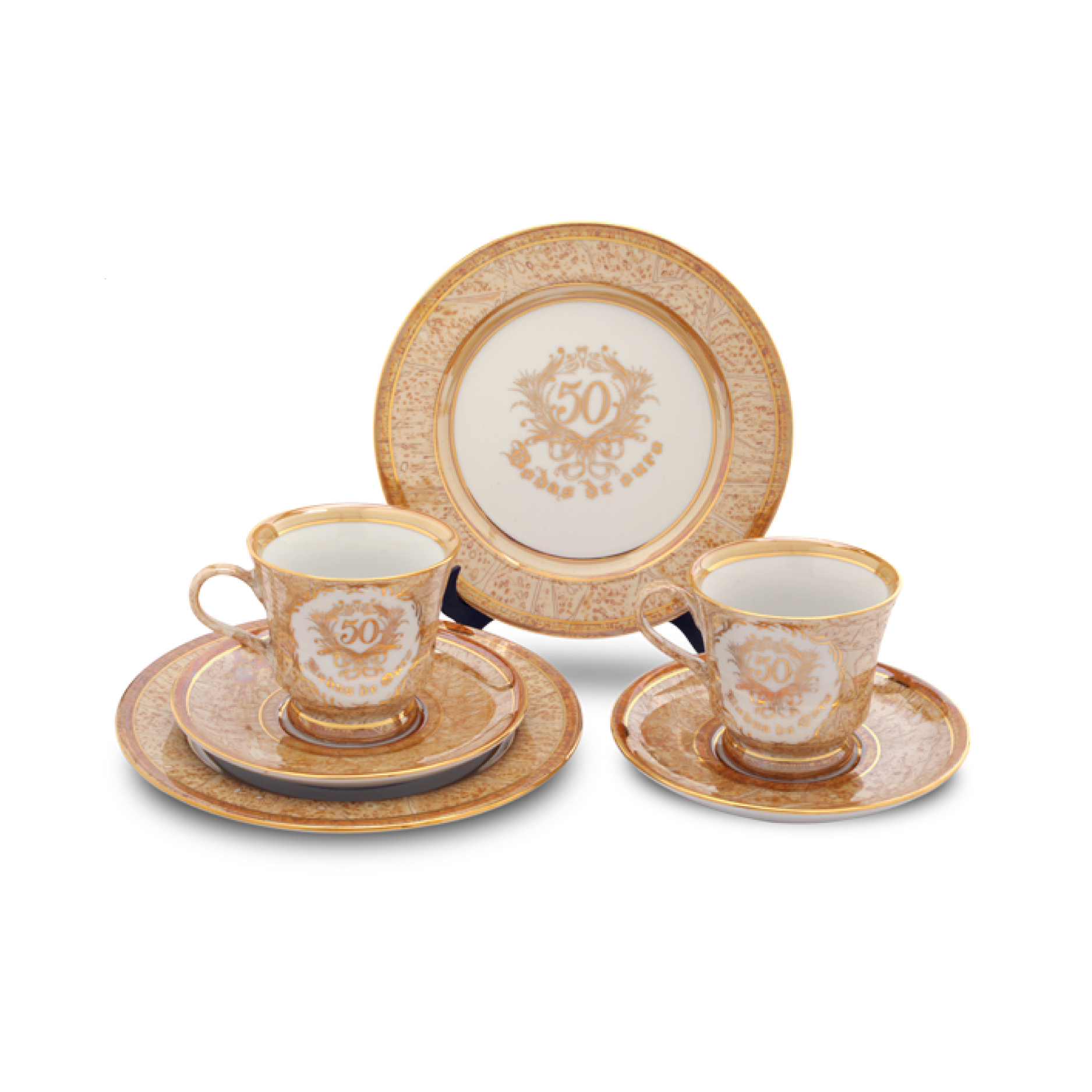 JOGO DE LANCHE BODAS OURO (2 pratos médio, 2 xícaras e 2 pires)