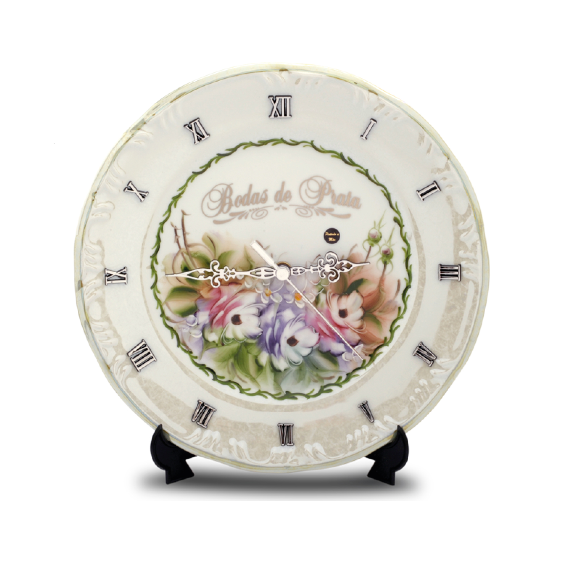 RELOGIO GRANDE FLOWER BODAS DE PRATA (ACOMPANHA SUPORTE)