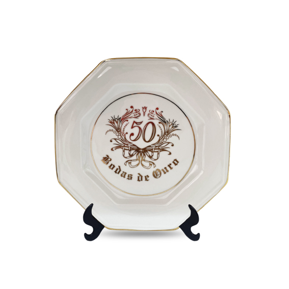 PRATO GRANDE OITAVADO BODAS DE OURO (ACOMPANHA SUPORTE)