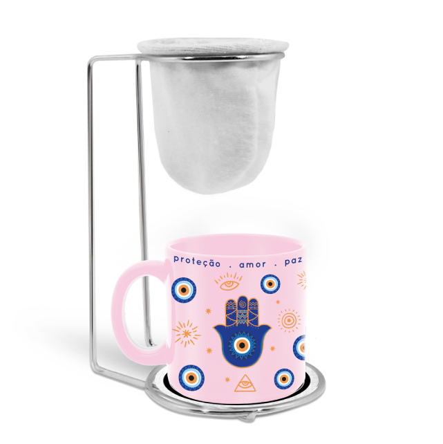 KIT CAFÉ CERÂMICA ROSA OLHO GREGO 100ML