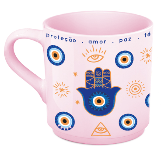 CANECA TRANDY PORCELANA OLHO GREGO ROSA 220ML