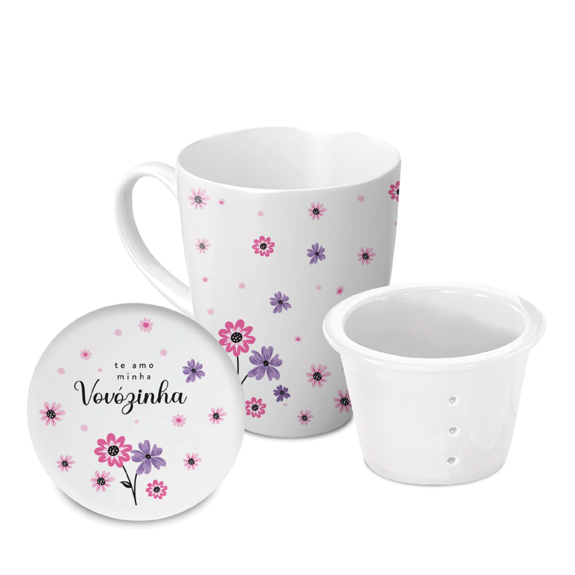 CANECA+INFUSOR PORCELANA 300ML VOVOZINHA
